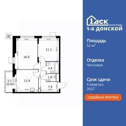 Продаётся 2-к квартира номер 473 общей площадью 52.8 кв.м. на 20-м этаже 24 этажного здания. Чистовая отделка. Цена с учётом скидки.