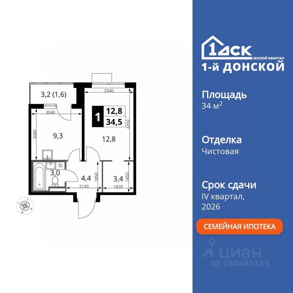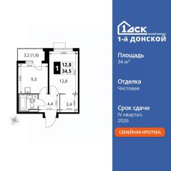Продаётся 1-к квартира номер 479 общей площадью 34.5 кв.м. на 24-м этаже 24 этажного здания. Чистовая отделка.
