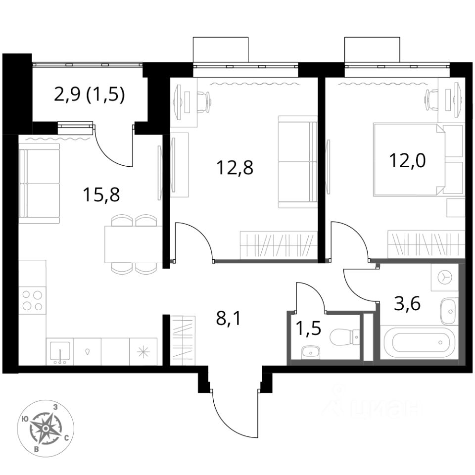 - Линейная планировка - максимальная функциональность и удобство.