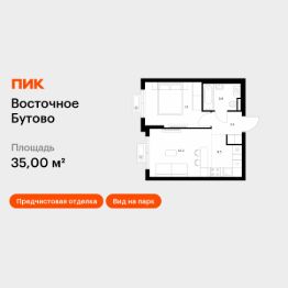 Продаётся 1-комн. квартира площадью 35 кв.м на 15 этаже 25 этажного дома (Корпус 48, Секция 4) проекта ПИК Восточное Бутово. Светлый просторный подъезд на уровне земли, функциональная планировка, большие окна, предчистовая отделка.