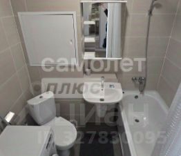 - в совмещенном санузле установлены тёплые полы, полотенцесушитель, стиральная машина автомат, а также раковина, зеркало и ванна.
