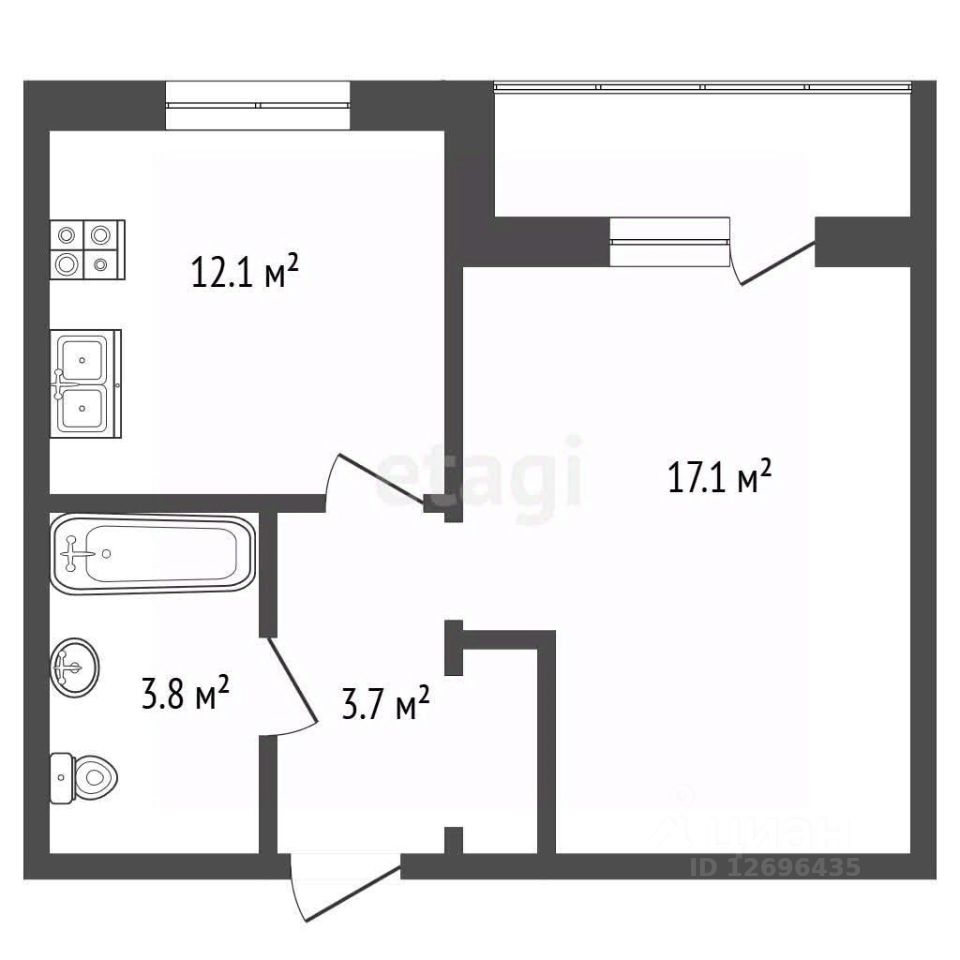 Эффективная планировка формата "евродвушка" обеспечивает четкое зонирование: изолированная спальня отделена от просторной кухни-гостинной, что создает комфортные условия для проживания одного человека или пары. В квартире установлен кондиционер.