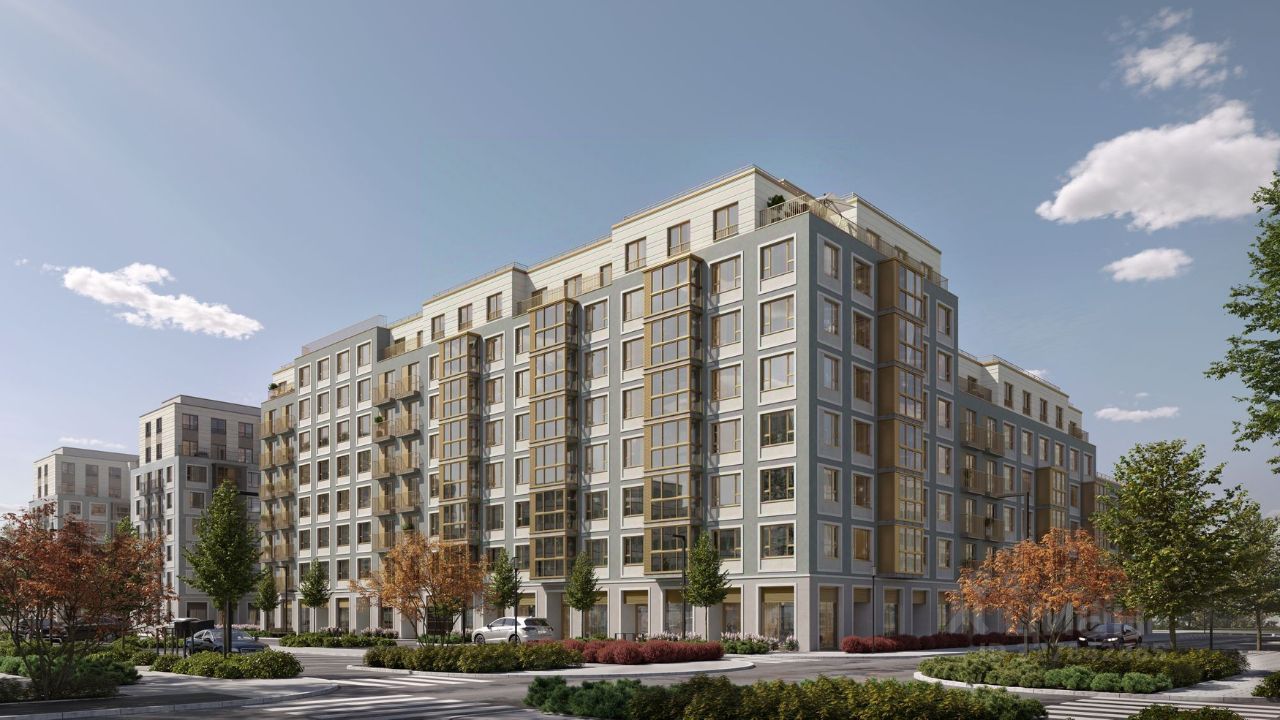 Квартира с кухней-гостиной и двумя спальнями в "Первом квартале". Особенности планировки: вид во двор, второй санузел, мастер-спальня, новые лоты, окна на две стороны, предчистовая отделка, разнесённые спальни.