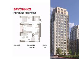 Квартира с кухней-гостиной и двумя спальнями в "Первом квартале". Особенности планировки: вид во двор, второй санузел, гардеробная, лоджия, новые лоты, предчистовая отделка.