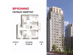 Квартира с кухней-гостиной и двумя спальнями в "Первом квартале". Особенности планировки: балкон, вид во двор, гардеробная, мастер-спальня, новые лоты, постирочная, предчистовая отделка, разнесённые спальни. квартиры в нашей базе: МТК06-Ж1.6.5.