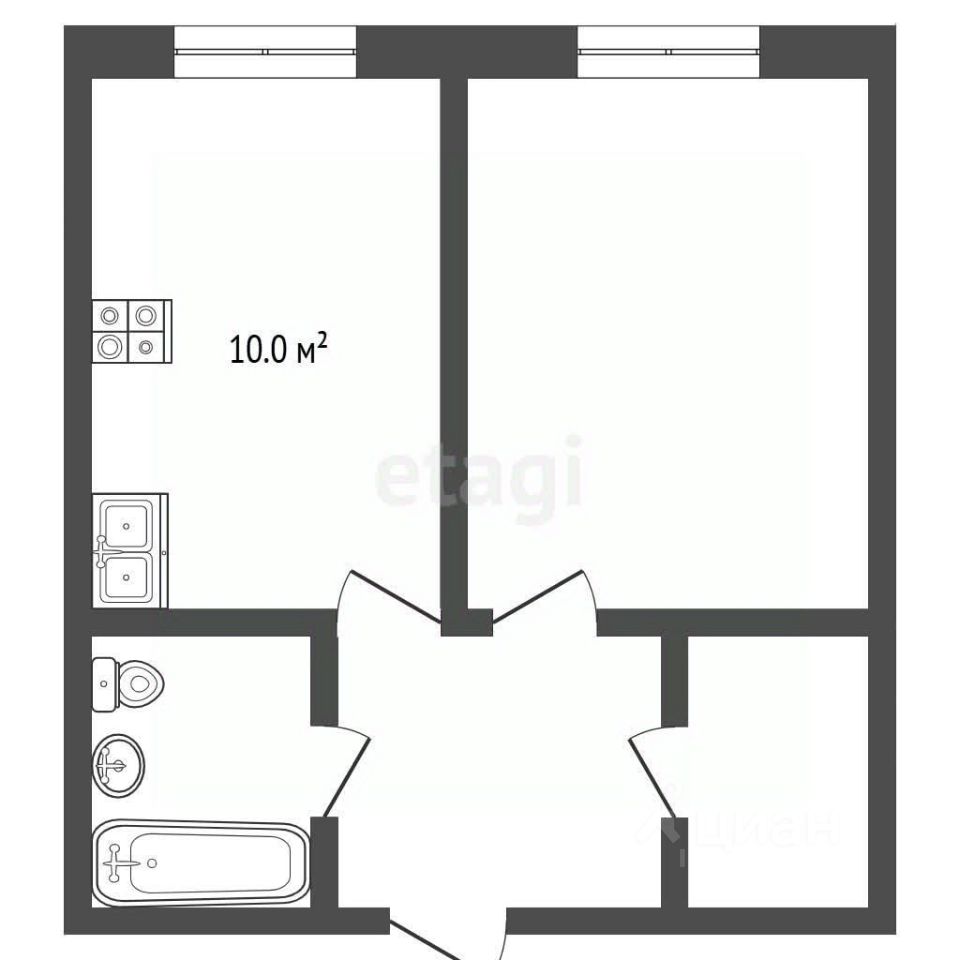 - Общая площадь: 45кв. м. Кухня: 10 кв.м
