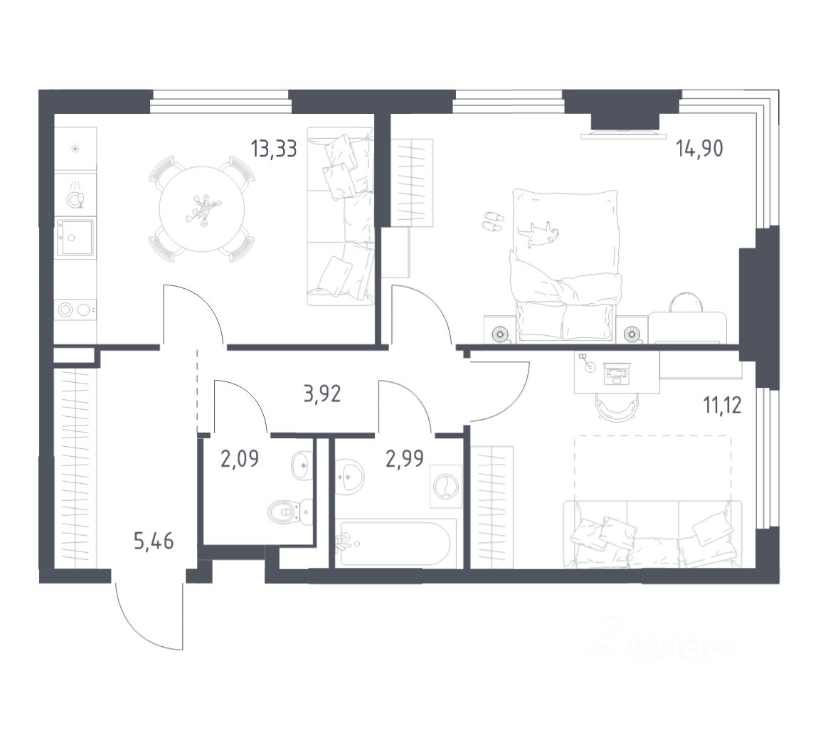 Строим кварталы для жизни с заботой о будущем. Предлагается 2-комнатная квартира комфорт-класса площадью 53,81 кв.м в корпусе 18 на 7-м этаже, в жилом комплексе "Пригород Лесное".