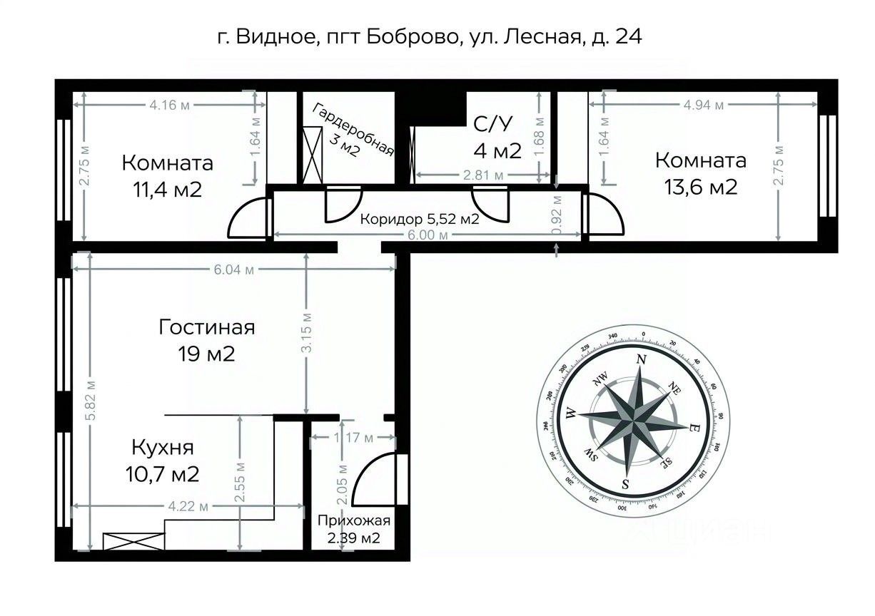 • Общая площадь — 68,6 м²