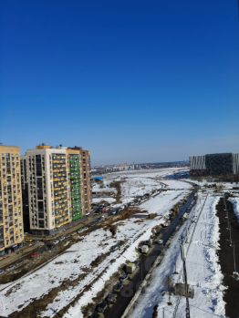 Квартира расположена на 14м этаже 17этажного дома: тихо, светло, вид не перекрыт соседними зданиями и окна выходят на внешнюю сторону улицы.