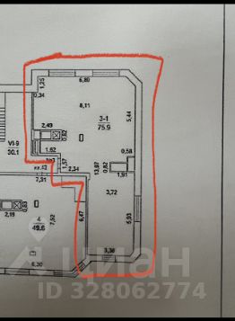 Общая площадь составляет 75.9 кв. м (периметр первого этажа) жилая площадь — 40 кв. м, площадь кухни — 17 году. Высота потолков впечатляющая — от 3-6 метров.