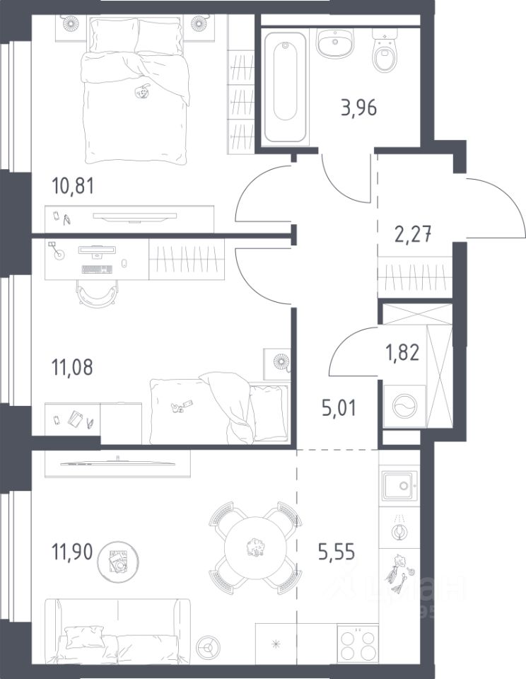Продаётся 2-комнатная квартира в строящемся доме (Корпус 14.1), срок сдачи: II-кв. 2026, общей площадью 52.4 кв.м., на 14 этаже. "Пригород. Лесное" возводится в экологически чистом районе в 4 км от МКАД на берегу реки Людовна вблизи города Видное.