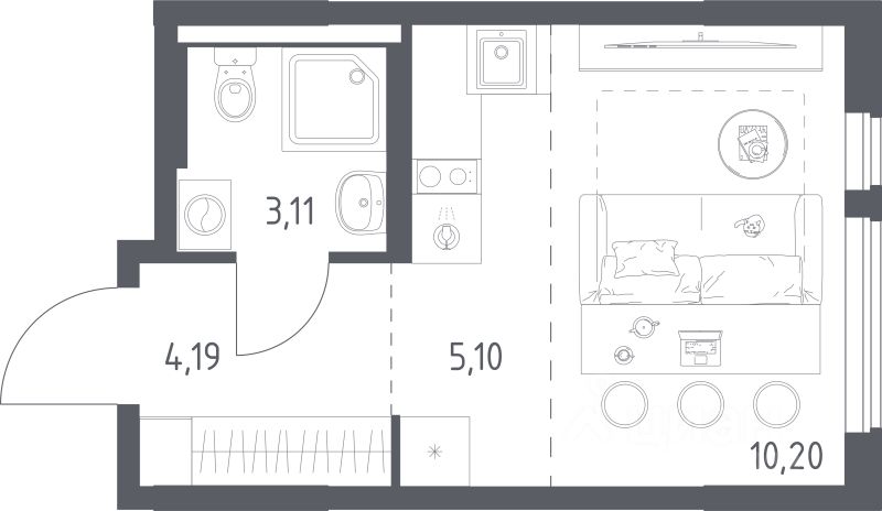Продаётся студия в строящемся доме (Корпус 8.2), срок сдачи: III-кв. 2026, общей площадью 22.6 кв.м., на 17 этаже. Расположение, транспортная доступность