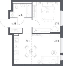 Продаётся 1-комнатная квартира в строящемся доме (Корпус 8.2), срок сдачи: III-кв. 2026, общей площадью 42.35 кв.м., на 12 этаже. Расположение, транспортная доступность