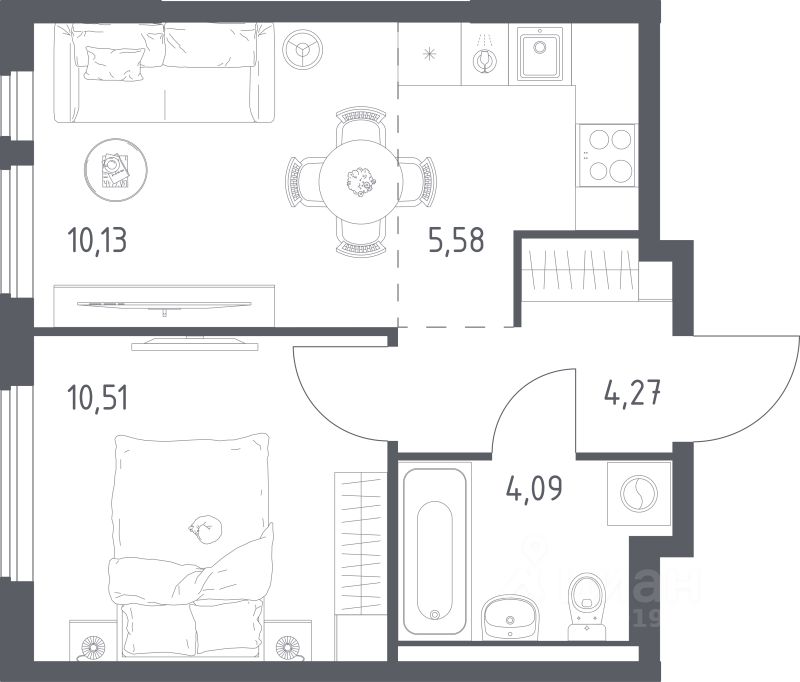 Продаётся 1-комнатная квартира в строящемся доме (Корпус 8.2), срок сдачи: III-кв. 2026, общей площадью 34.58 кв.м., на 12 этаже. Расположение, транспортная доступность