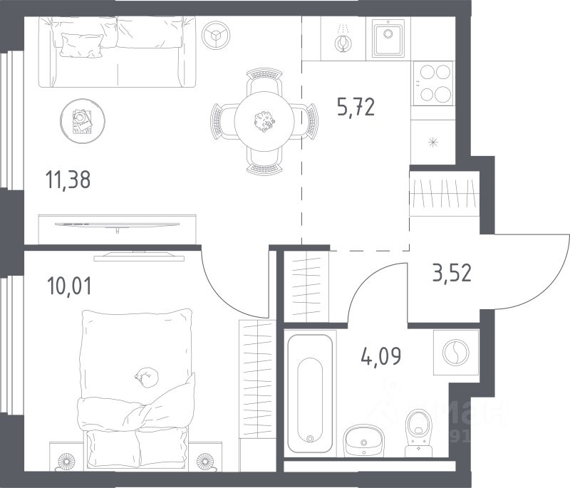 Продаётся 1-комнатная квартира в строящемся доме (Корпус 8.2), срок сдачи: III-кв. 2026, общей площадью 34.72 кв.м., на 11 этаже. Расположение, транспортная доступность