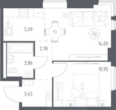 Продаётся 1-комнатная квартира в строящемся доме (Корпус 8.2), срок сдачи: III-кв. 2026, общей площадью 40.82 кв.м., на 17 этаже. Расположение, транспортная доступность