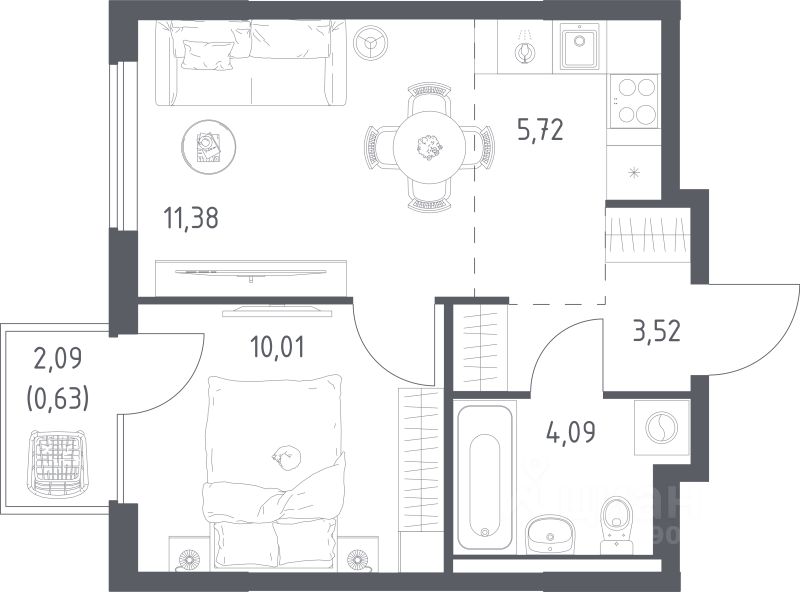 Продаётся 1-комнатная квартира в строящемся доме (Корпус 8.2), срок сдачи: III-кв. 2026, общей площадью 35.35 кв.м., на 3 этаже. Расположение, транспортная доступность