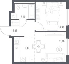 Продаётся 1-комнатная квартира в строящемся доме (Корпус 8.2), срок сдачи: III-кв. 2026, общей площадью 38.11 кв.м., на 11 этаже. Расположение, транспортная доступность