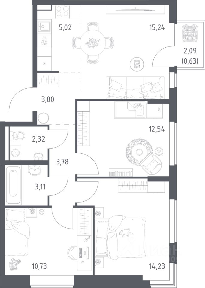 Продаётся 3-комнатная квартира в строящемся доме (Корпус 8.2), срок сдачи: III-кв. 2026, общей площадью 71.4 кв.м., на 3 этаже. Расположение, транспортная доступность
