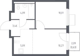 Продаётся 1-комнатная квартира в строящемся доме (Корпус 8.1), срок сдачи: III-кв. 2026, общей площадью 33.55 кв.м., на 9 этаже. Расположение, транспортная доступность