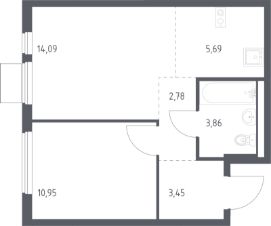 Продаётся 1-комнатная квартира в строящемся доме (Корпус 8.1), срок сдачи: III-кв. 2026, общей площадью 40.82 кв.м., на 16 этаже. Расположение, транспортная доступность