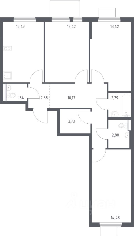 Продаётся 3-комнатная квартира в строящемся доме (Корпус 8.1), срок сдачи: III-кв. 2026, общей площадью 77.78 кв.м., на 8 этаже. Расположение, транспортная доступность