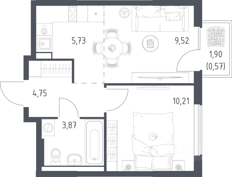 Продаётся 1-комнатная квартира в строящемся доме (Корпус 6.2), срок сдачи: III-кв. 2026, общей площадью 34.65 кв.м., на 9 этаже. Расположение, транспортная доступность