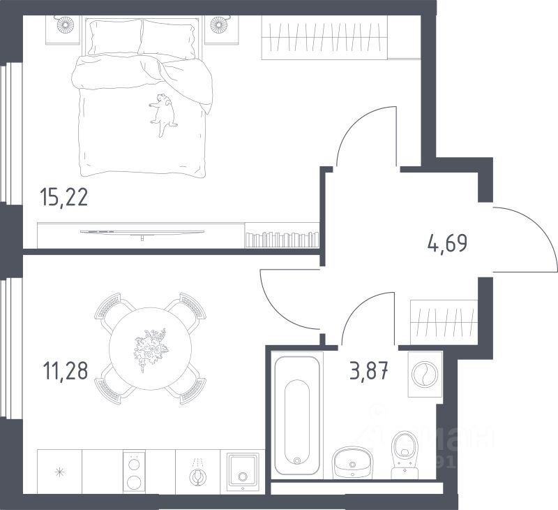 Все квартиры будут продаваться с фирменной чистовой отделкой группы "Самолет". В стоимость планировки входят кухонный гарнитур и бытовая техника: их можно оформить в ипотеку вместе с квартирой.
