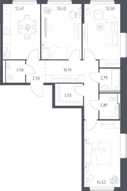 Продаётся 3-комнатная квартира в строящемся доме (Корпус 6.1), срок сдачи: III-кв. 2026, общей площадью 78.52 кв.м., на 17 этаже. Расположение, транспортная доступность