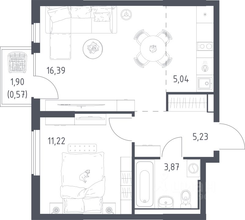 Продаётся 1-комнатная квартира в строящемся доме (Корпус 6.1), срок сдачи: III-кв. 2026, общей площадью 42.32 кв.м., на 9 этаже. Расположение, транспортная доступность