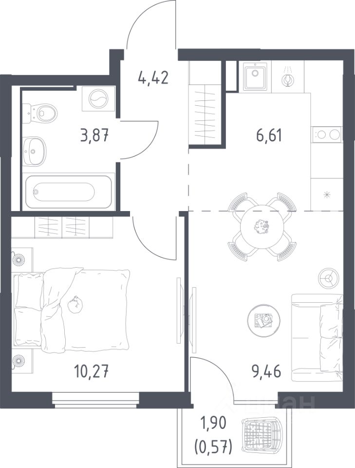 Продаётся 1-комнатная квартира в строящемся доме (Корпус 6.1), срок сдачи: III-кв. 2026, общей площадью 35.2 кв.м., на 3 этаже. Расположение, транспортная доступность