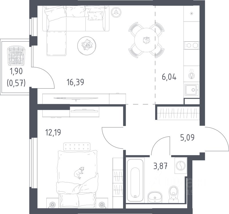 Продаётся 1-комнатная квартира в строящемся доме (Корпус 6.1), срок сдачи: III-кв. 2026, общей площадью 44.15 кв.м., на 7 этаже. Расположение, транспортная доступность