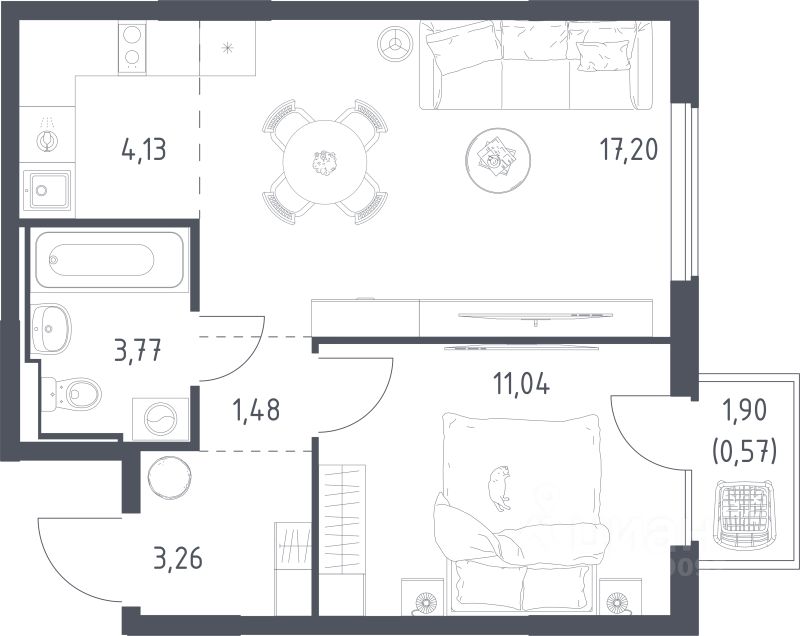 Продаётся 1-комнатная квартира в строящемся доме (Корпус 6.1), срок сдачи: III-кв. 2026, общей площадью 41.45 кв.м., на 3 этаже. Расположение, транспортная доступность