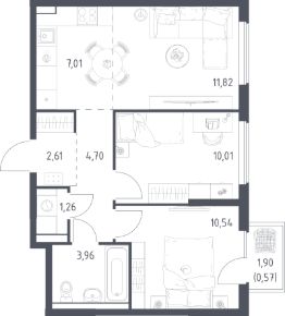 Продаётся 2-комнатная квартира в строящемся доме (Корпус 6.1), срок сдачи: III-кв. 2026, общей площадью 52.48 кв.м., на 3 этаже. Расположение, транспортная доступность