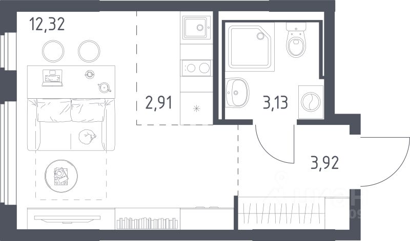 Продаётся студия в строящемся доме (Корпус 6.1), срок сдачи: III-кв. 2026, общей площадью 22.28 кв.м., на 7 этаже. Расположение, транспортная доступность