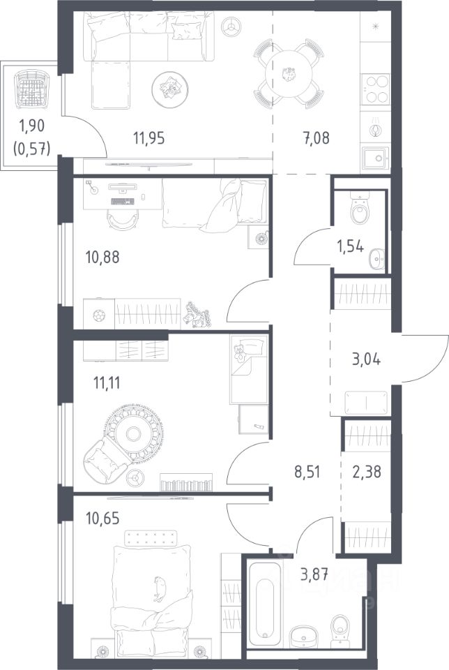 Продаётся 3-комнатная квартира в строящемся доме (Корпус 6.1), срок сдачи: III-кв. 2026, общей площадью 71.58 кв.м., на 7 этаже. Расположение, транспортная доступность