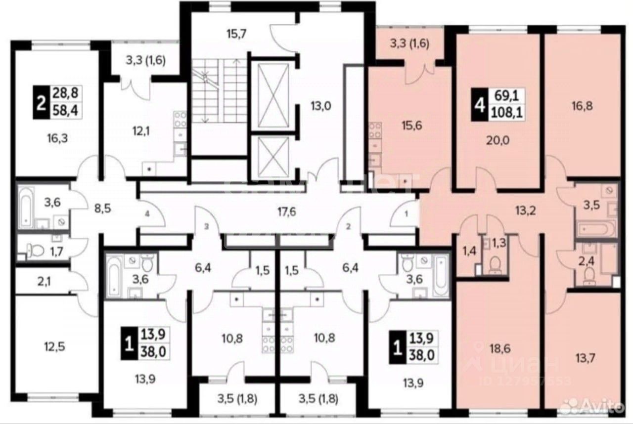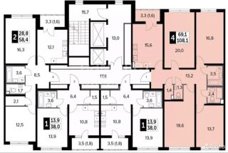 четырёхкомнатная квартира общей площадью 108,1 кв. м.