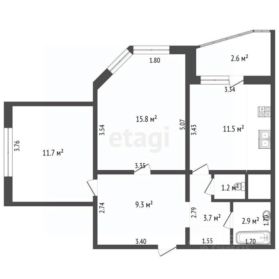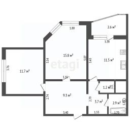Квартира площадью 57 кв м. расположена в одноподъездном доме . Окна выходят в тихий двор и на озеро. Огромная лоджия 6кв м. - можно оборудовать под кабинет.