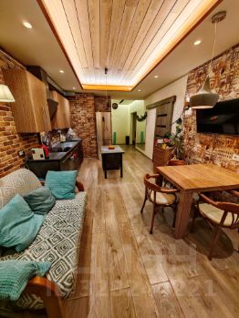 Квартира с продуманной планировкой и креативным авторским ремонтом в стиле теплого лофта. Кухня-гостиная 20 кв.м.- светлая и просторная, с деревянным потолком и мягкой подсветкой, клинкером под кирпич, раздвижными дверями и несколькими сценариями освещения. По периметру комнаты встроенная потолочная подсветка, создающая мягкий ровный свет и визуально расширяющая пространство. В спальне и ванной установлена цветная подсветка с регулировкой яркости и выбором оттенка. Комната разделена на две функциональные зоны- спальню и гостиную. Спальная часть отделена частичной перегородкой с большим порталом, предусмотрена дополнительная потолочная вентиляция для комфортного сна. С/у раздельный с теплым полом. Имеется просторная лоджия, с теплыми регулируемыми полами. На полу ламинат с высоким классом влагозащиты. В квартире остается только кухонный гарнитур с варочной поверхностью и духовым шкафом.