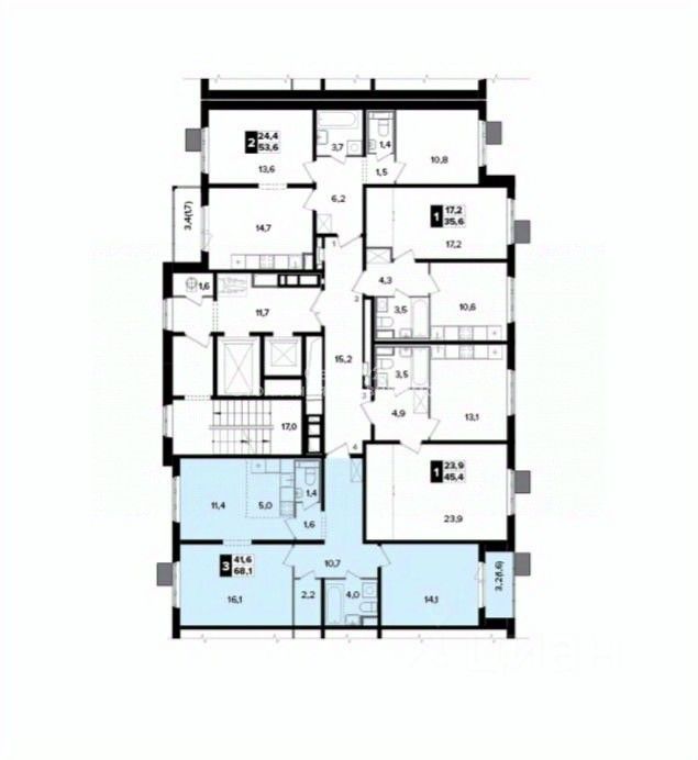 Общая площадь — 68,1 кв.м. Квартира расположена на 14 этаже 24-этажного дома — оптимальная высота с хорошими видовыми характеристиками, естественным освещением и минимальным уровнем шума.