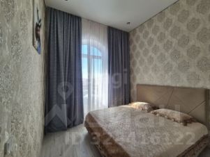 В комнате панорамное остекление с выходом на французский балкон, двуспальная кровать.