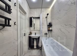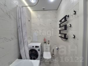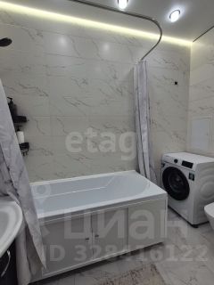 Просторный совмещенный санузел с новой европейской сантехникой и стиральной машиной.