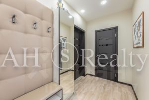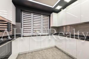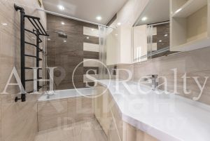 Квартира находится в готовом доме с готовым ремонтом. Элегантный стиль, комфорт отделки под ключ по авторскому дизайн-проекту. Интерьер выполнен в модном стиле, использованы только премиальные отделочные материалы - KEUKO /Германия/, DURAVIT /Германия/, ARCH-SKIN /Италия/. Европейская кухня со встроенной техникой. Качественная сантехника в ванной.