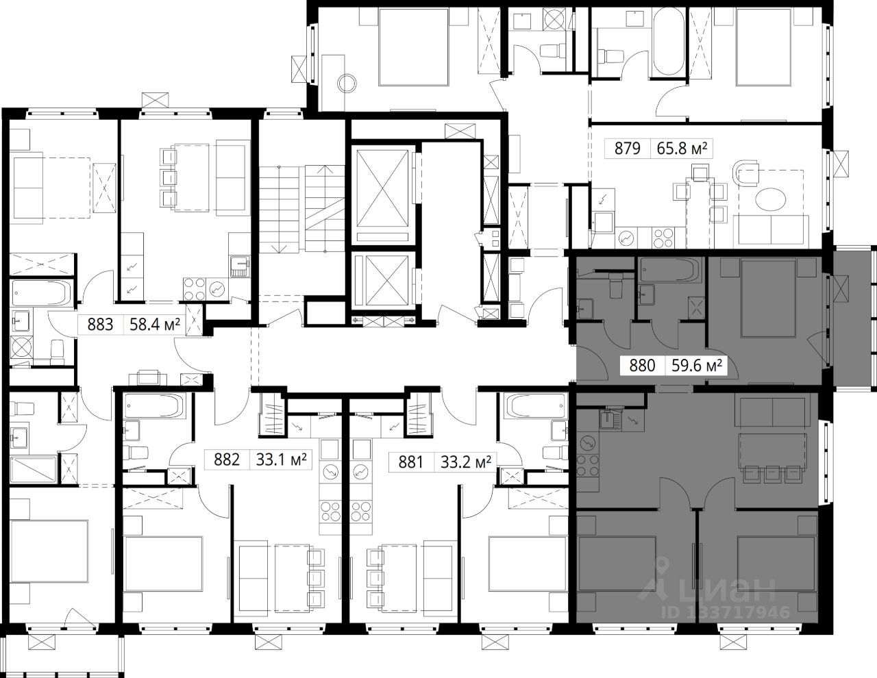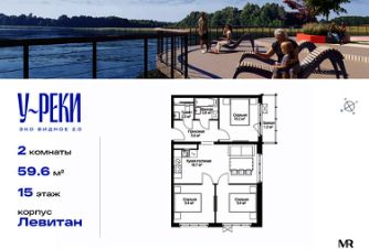 Продаётся 3-комнатная квартира общей площадью 59.60 м² без отделки в ЖК "У реки. Эко Видное 2.0" на 15-м этаже 17 этажного корпуса Левитан.