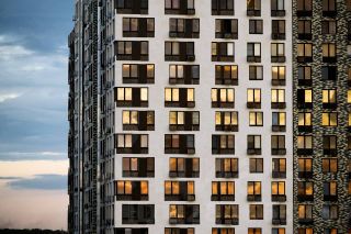 Семнадцатиэтажный корпус "Левитан" состоит из 13 секций, образующих в плане закрытый периметр двора.