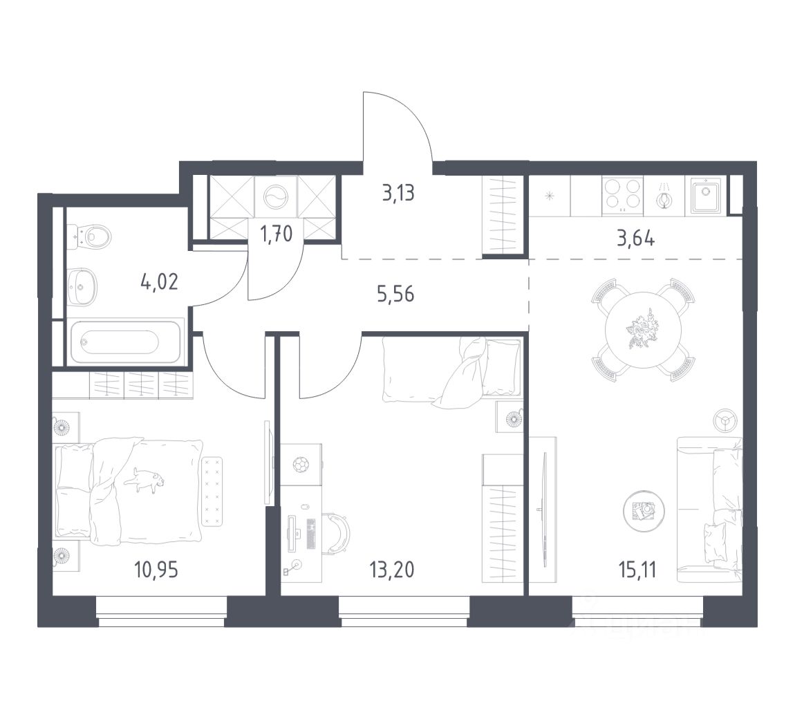 Строим кварталы для жизни с заботой о будущем. Предлагается 2-комнатная квартира комфорт-класса площадью 57,31 кв.м в корпусе 10.1 на 7-м этаже, в жилом комплексе "Богдановский Лес".