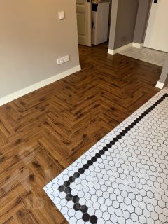 - на полу ламинат елочка фирмы MyStep, толщина 12 мм;