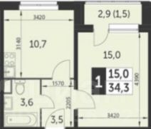 34,3 м²