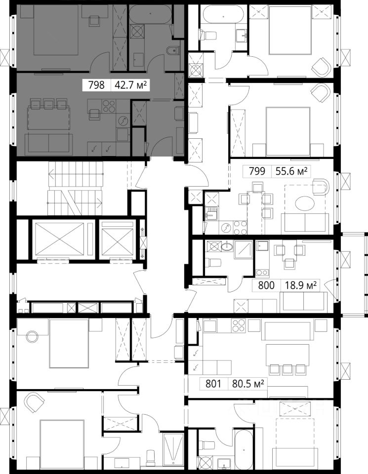 - 5 корпусов переменной этажности);