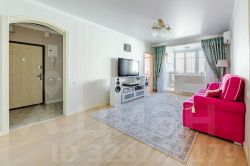 Просторная 3-комнатная квартира с улучшенной планировкой: большая гостиная, 2 изолированный спальни, 2 гардеробные, большой санузел, 2 лоджии и - мечта хозяйки - кухня площадью 12,3м²! Качественный ремонт в отличном состоянии, техника и мебель готовы к приему нового хозяина. Квартира "распашонка": окна выходят на 2 стороны и обе стороны - во двор. При входе располагается удобный гардероб для верхней одежды. Одна лоджия (4,7м²) без нарушений утеплена и присоединена к объемной гостиной, но легко может быть трансформирована в кабинет или летнее помещение. Для комфорта в коридоре, ванной комнате, на кухне и на обеих лоджиях пол с подогревом. В одной из спален также есть большой балкон (4,3м²), утеплен и функционален. В большой спальне выстроен полноценный гардероб с системой хранения, в другой комнате вместительный шкаф-купе. В каждой комнате кондиционер. Фотографии стремятся передать уют и качество квартиры, но лучше один раз увидеть своими глазами.